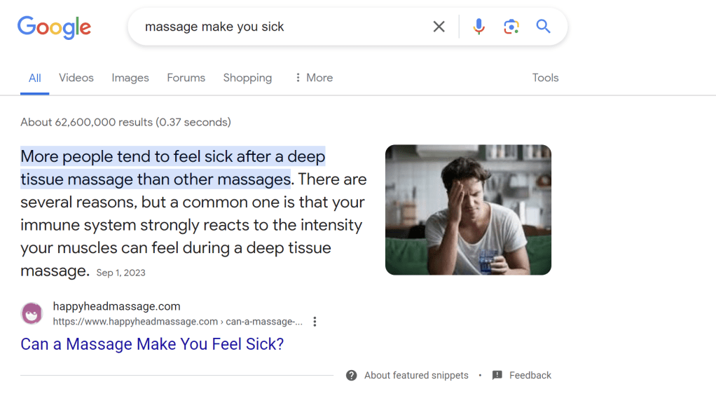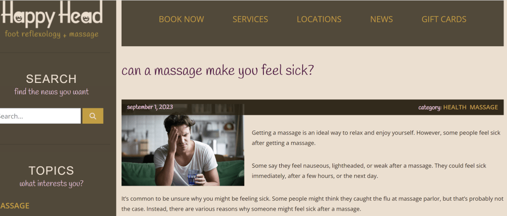 Can’t say I’ve felt sick after a massage. Seems unfortunate if it happens.